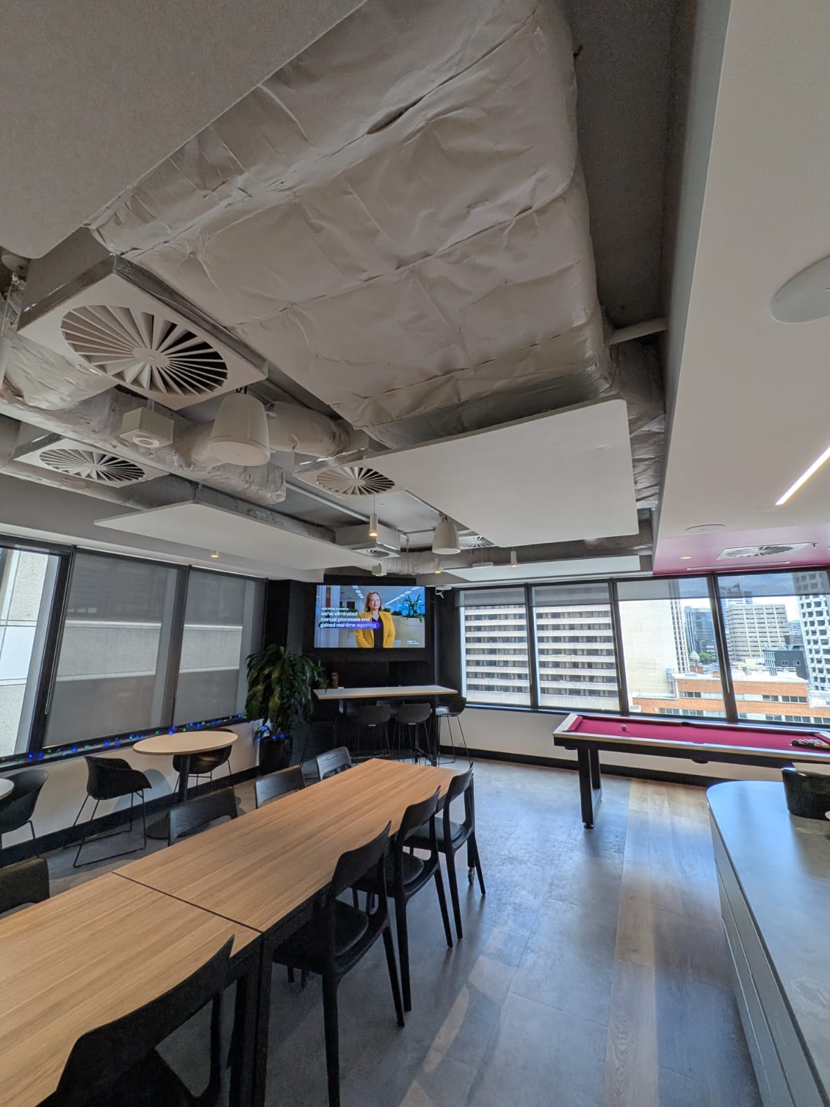 As aleading provider of business management solutions, MYOB required a high-performance office environment that balanced vibrant collaboration with quiet focus.Their new fit-out at 144 Edward Street featured expansive open-plan zones and glass-heavy meeting rooms, which naturally led to challenges with sound reverberation andspeech privacy. Without a specialized acoustic intervention, the creative and energeticculture MYOB is known for could have been hindered by excessive noise bleed and poorsound clarityin key work areas.